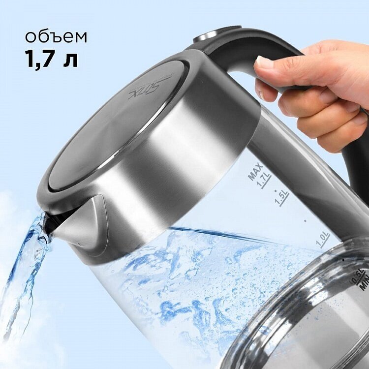 Type: kettle, body material: plastic/glass, volume: 1.70 l, type of heating element: closed, features: 360 degree rotation, on indication, cord storage compartment, filter, compartment