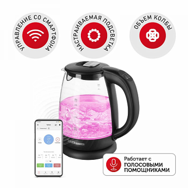Kettle REDMOND SkyKettle RK-G210S, 1.7l, 2200W, glass, control from a smartphone