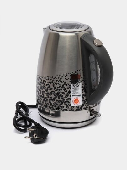 Description: Type: kettle, body material: metal, volume: 1.70 l, type of heating element: closed, features: 360 degree rotation, on indication, cord storage compartment, drawing on the body, filter