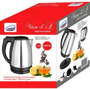 Type: kettle, body material: metal, volume: 1.80 l, type of heating element: closed, features: 360 degree rotation, water level indicator, cord storage compartment, filter