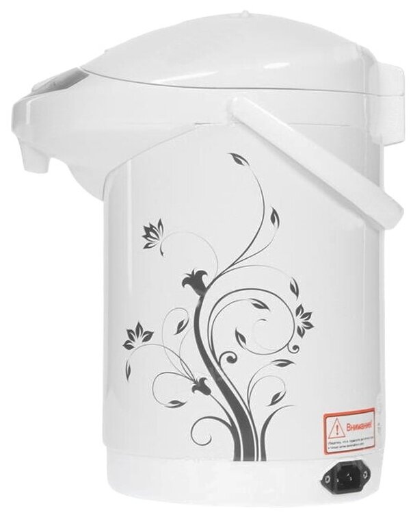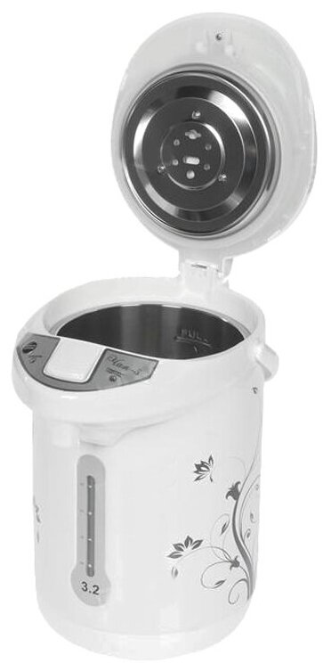 Description: Type: thermopot, case material: metal, volume: 3.20 l, type of heating element: closed, additional functions: keeping warm, features: double walls, water level indicator, drawing on the case, removable cover