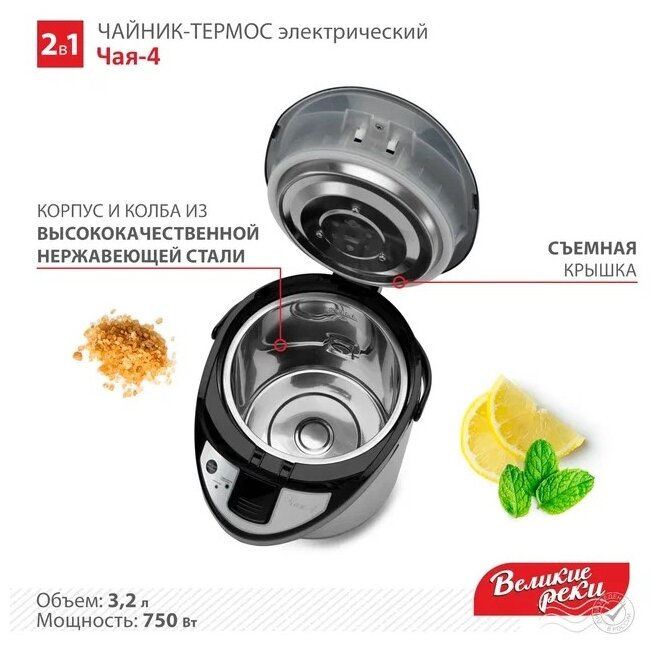360 degree rotation, double walls, water level indicator, power on indication, removable cover