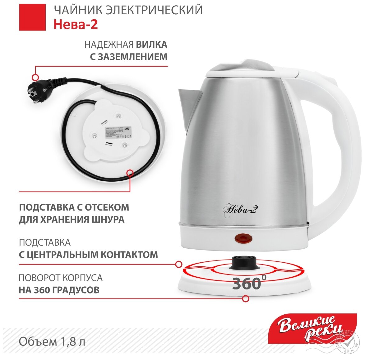 Kettle electric Neva-2, stainless steel. steel in gray plastic
