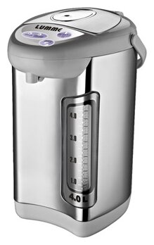 Type: thermopot, case material: metal, volume: 4 l, type of heating element: closed, additional functions: keeping warm, features: double walls, water level indicator