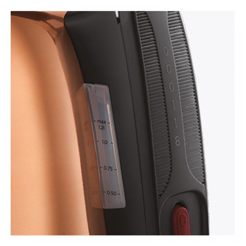 Type: kettle, body material: metal, volume: 1.20 l, type of heating element: closed, features: 360 degree rotation, water level indicator, cord storage compartment, removable lid, filter