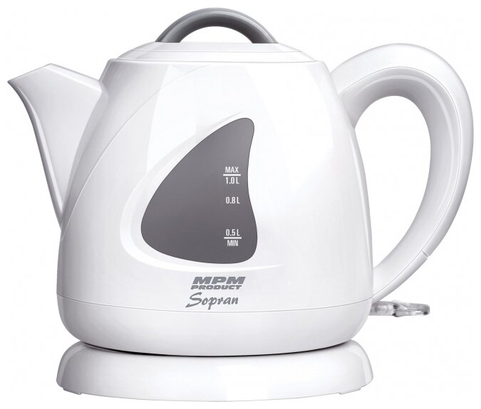 Type: kettle, body material: plastic, volume: 1 l, type of heating element: closed, features: 360 degree rotation, water level indicator, removable lid, filter