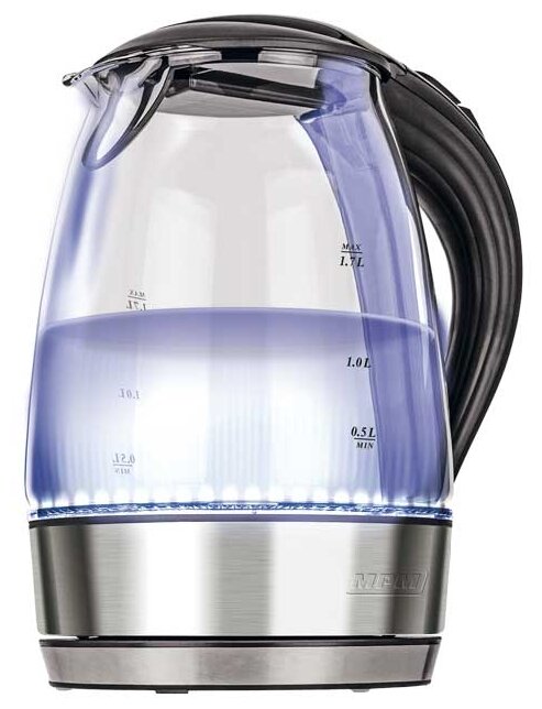 Type: kettle, body material: metal/glass, volume: 1.70 l, type of heating element: closed, features: 360 degree rotation, water level indicator, filter