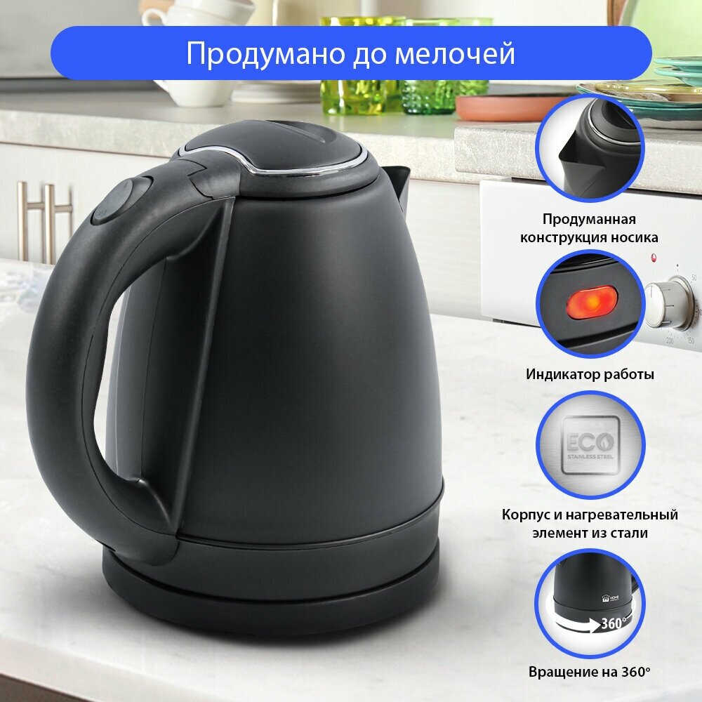 Type: kettle, body material: metal/plastic, volume: 1.70 l, type of heating element: closed, features: 360 degree rotation, on indication, cord storage compartment