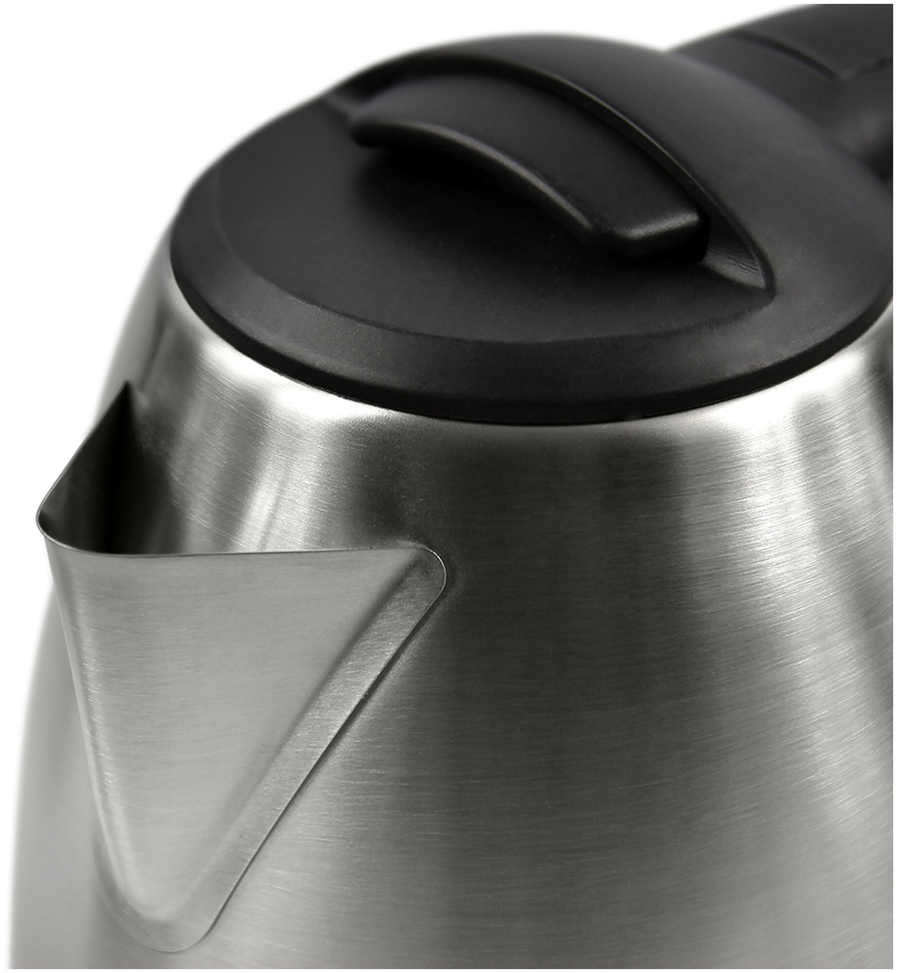 Type: kettle, body material: metal/plastic, volume: 2 l, type of heating element: closed, features: 360 degree rotation, on indication, cord storage compartment