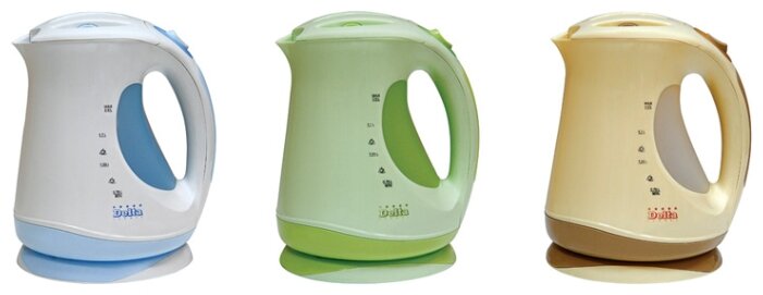 Type: kettle, body material: plastic, volume: 2 l, type of heating element: closed, features: 360 degree rotation, water level indicator, cord storage compartment