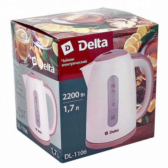 Electric kettle DELTA DL-1106 white/burgundy