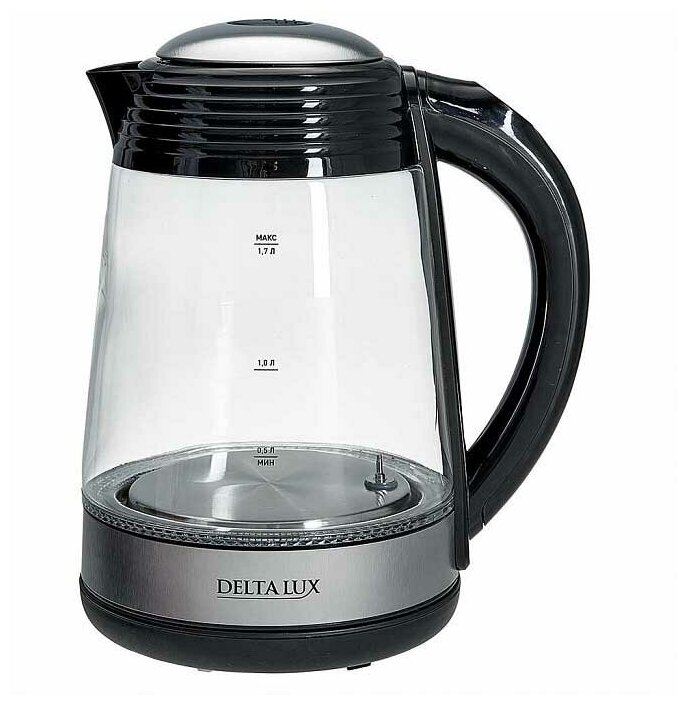 Type: kettle, body material: plastic/glass, volume: 1.70 l, type of heating element: closed, additional functions: keeping warm, features: cord storage compartment