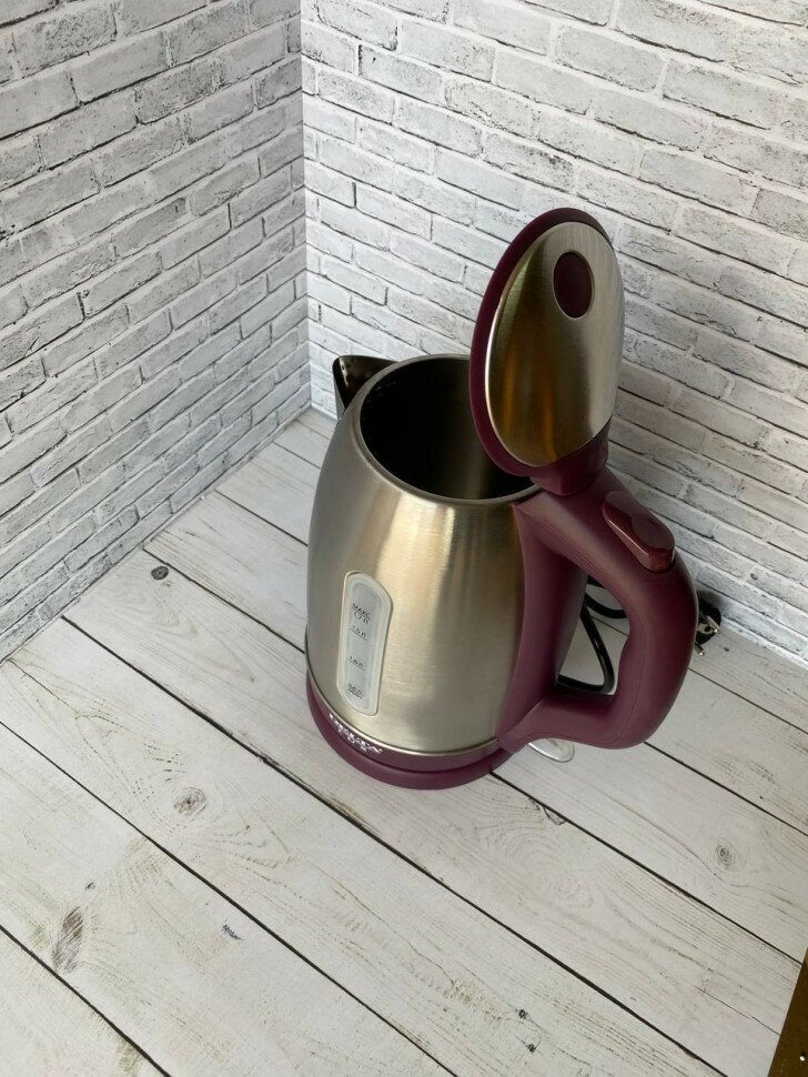 Type: kettle, body material: metal, volume: 1.70 l, type of heating element: closed, features: 360 degree rotation, water level indicator, cord storage compartment