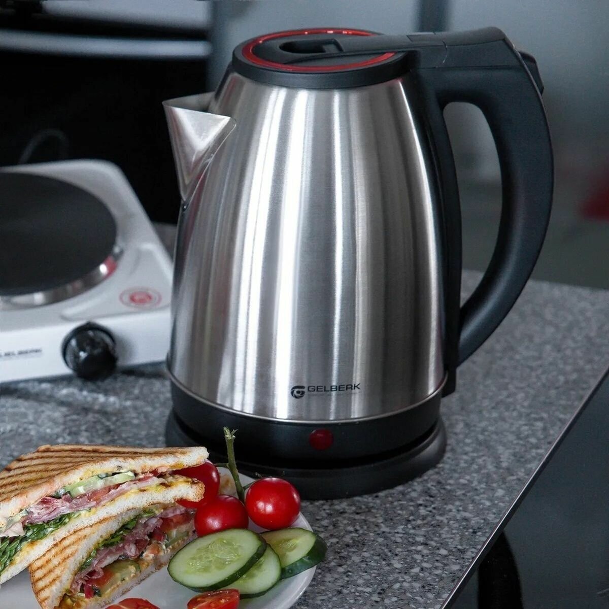 Type: kettle, body material: metal, volume: 1.80 l, type of heating element: closed, features: 360 degree rotation, cord storage compartment, 360° stand rotation