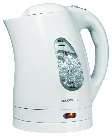 Type: kettle, body material: plastic, volume: 1.70 l, type of heating element: closed, additional functions: keeping warm, features: 360 degree rotation, water level indicator, cord storage compartment