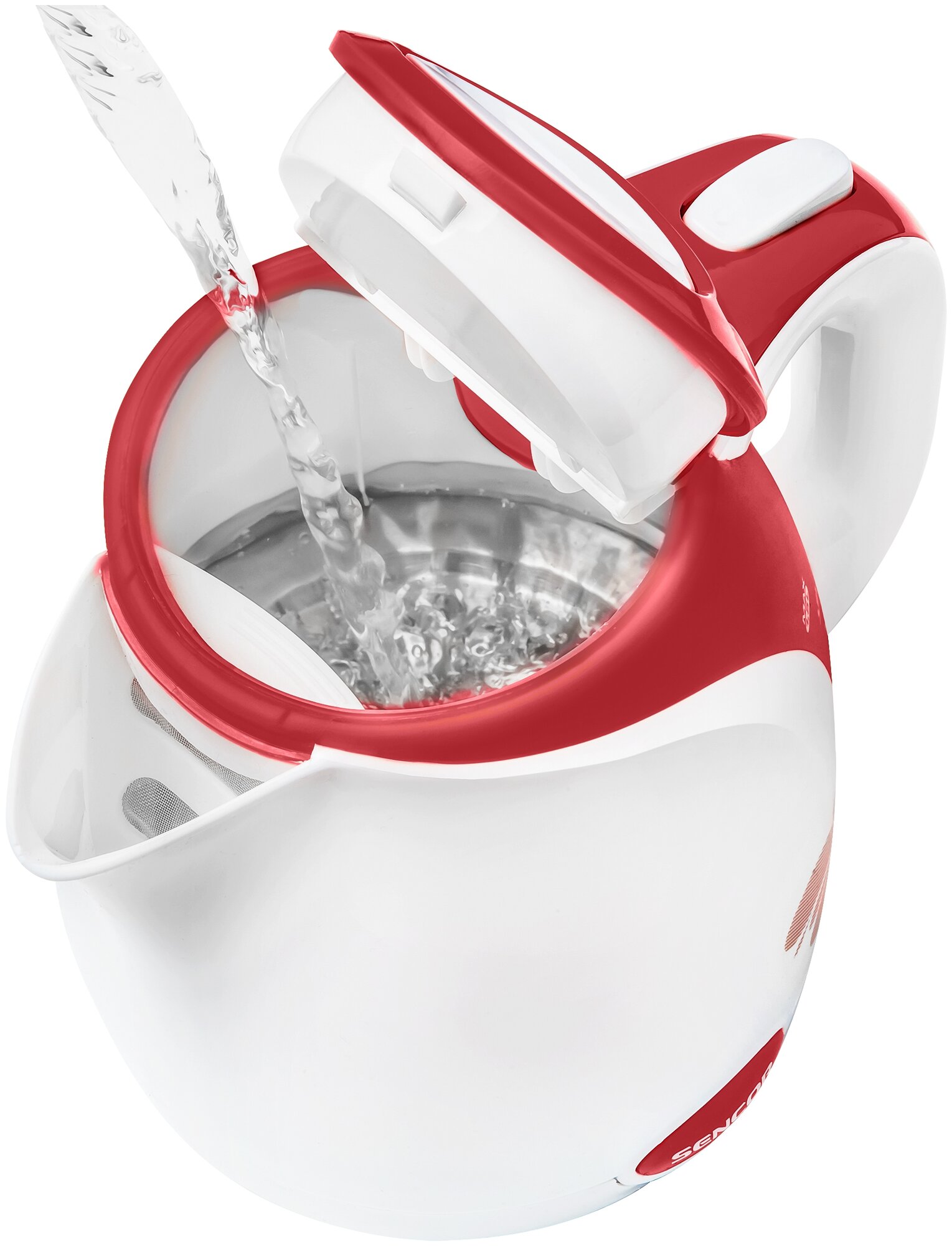 Description: Type: kettle, body material: plastic, volume: 1.50 l, type of heating element: closed, features: 360 degree rotation, water level indicator, cord storage compartment, pattern on the body, removable lid, filter