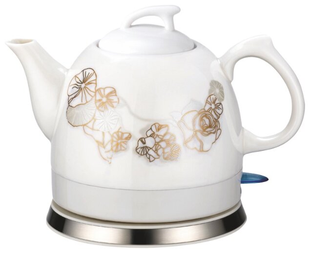 Type: teapot, body material: ceramics, volume: 1 l, type of heating element: closed, features: 360 degree rotation, pattern on the body, removable lid