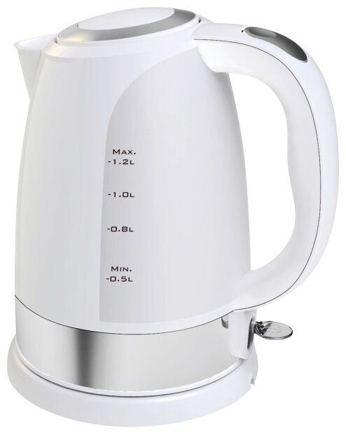 Type: kettle, body material: plastic, volume: 1.20 l, type of heating element: closed, features: 360 degree rotation, water level indicator, filter