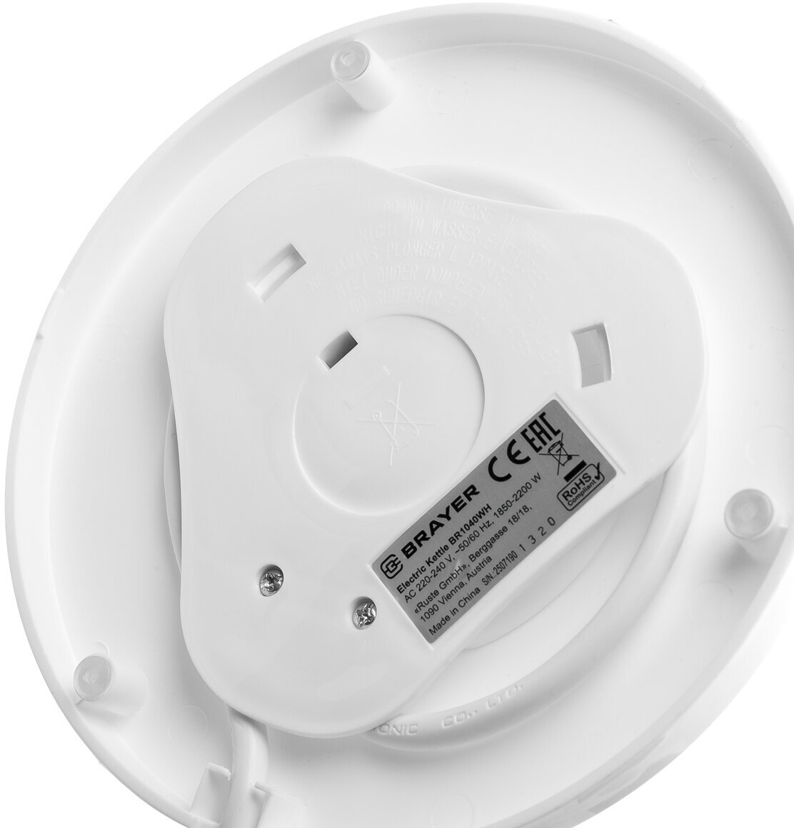 Type: kettle, body material: metal/plastic, volume: 2.20 l, heating element type: closed, features: 360 degree rotation, double walls