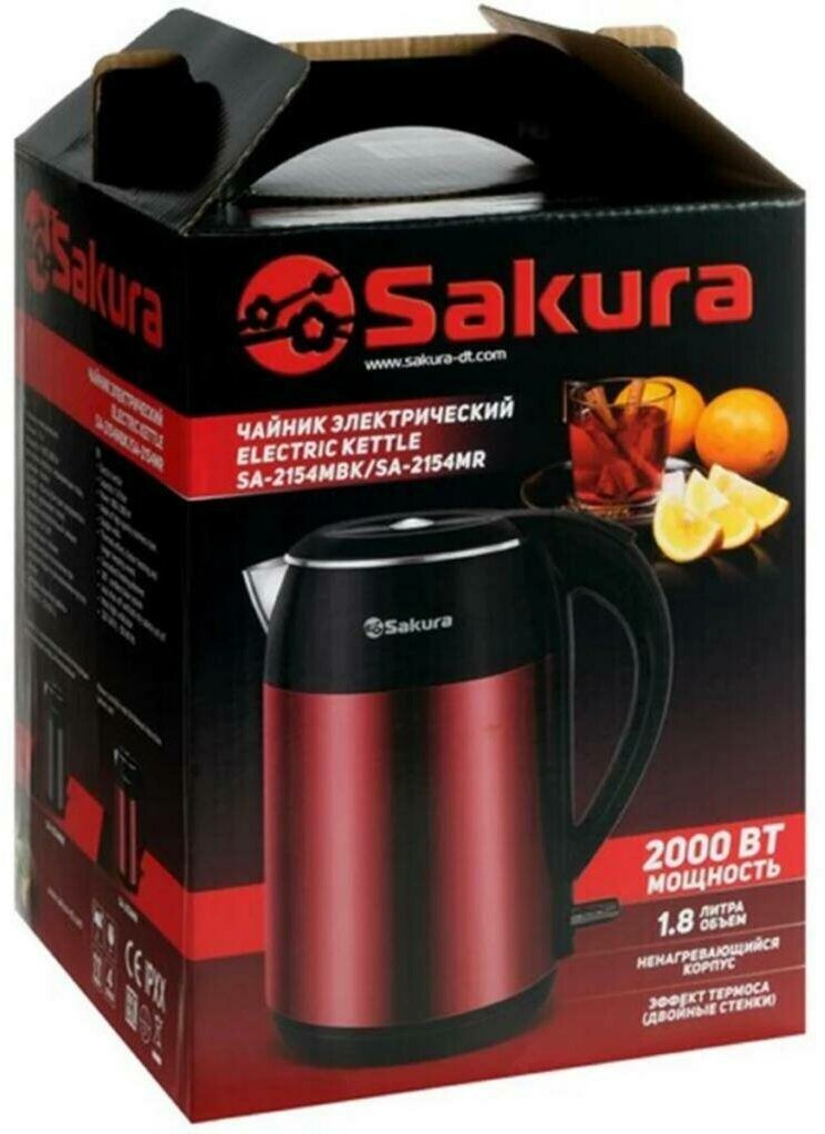 Electric kettle SA-2154MR 1.8 red metallic+black