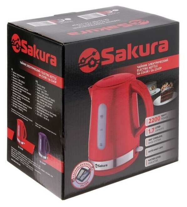 Kettle electric Sakura SA-2343R, plastic, 1.7 l, 1850-2200 W, red 5350111