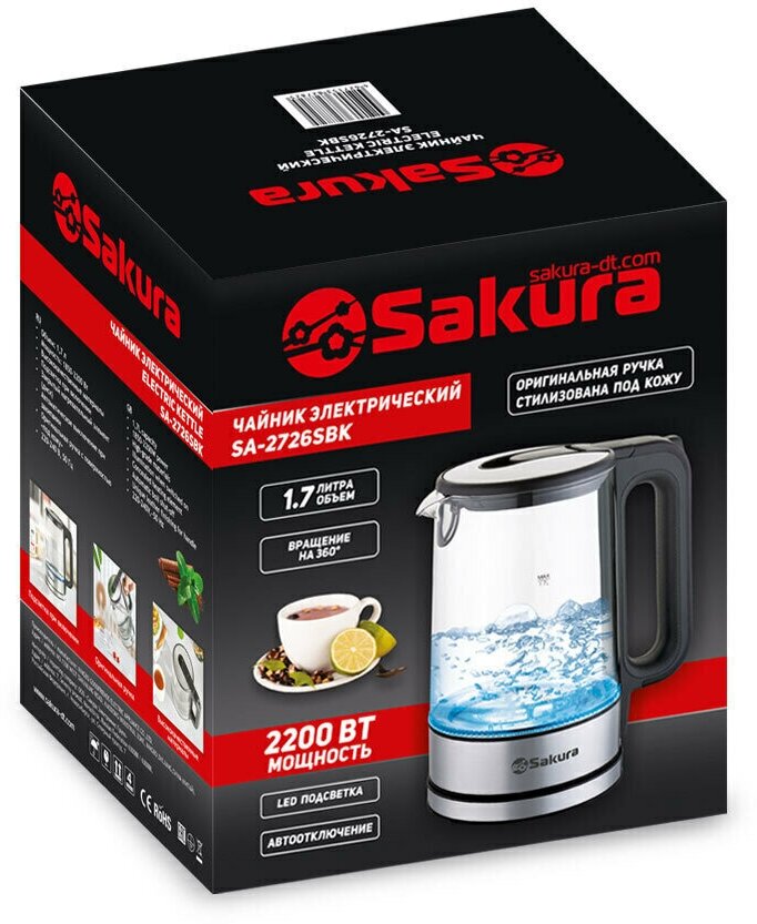 Type: kettle, body material: metal/glass, volume: 1.70 l, type of heating element: closed, features: 360 degree rotation, water level indicator, filter