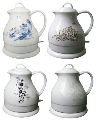 Description: Type: kettle, body material: ceramics, volume: 1 l, type of heating element: closed, features: 360 degree rotation, cord storage compartment, pattern on the body, removable lid
