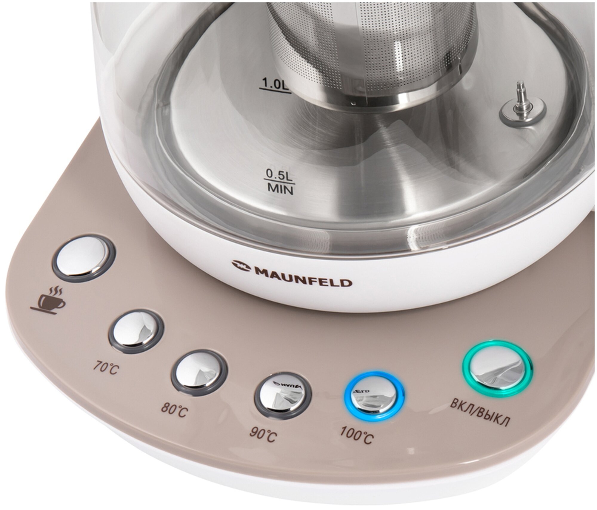 Type: kettle, body material: plastic/glass, volume: 1.50 l, type of heating element: closed, additional functions: keeping warm, features: 360 degree rotation, brewing filter, water level indicator