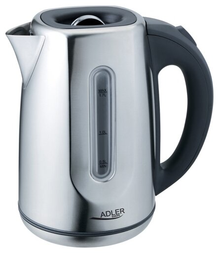 Type: kettle, body material: metal, volume: 1.70 l, type of heating element: closed, features: 360 degree rotation, water level indicator, cord storage compartment, filter