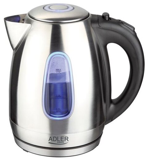 Type: kettle, body material: metal, volume: 1.70 l, type of heating element: closed, features: 360 degree rotation, water level indicator, cord storage compartment, filter