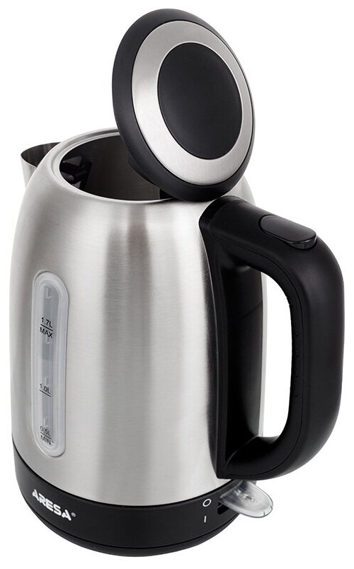 Type: kettle, body material: metal, volume: 1.70 l, type of heating element: closed, features: 360 degree rotation, water level indicator, cord storage compartment, filter
