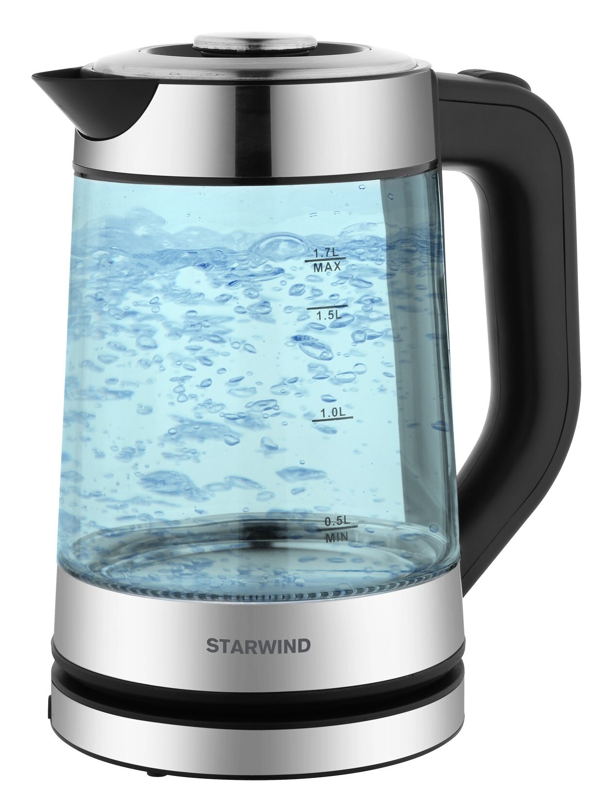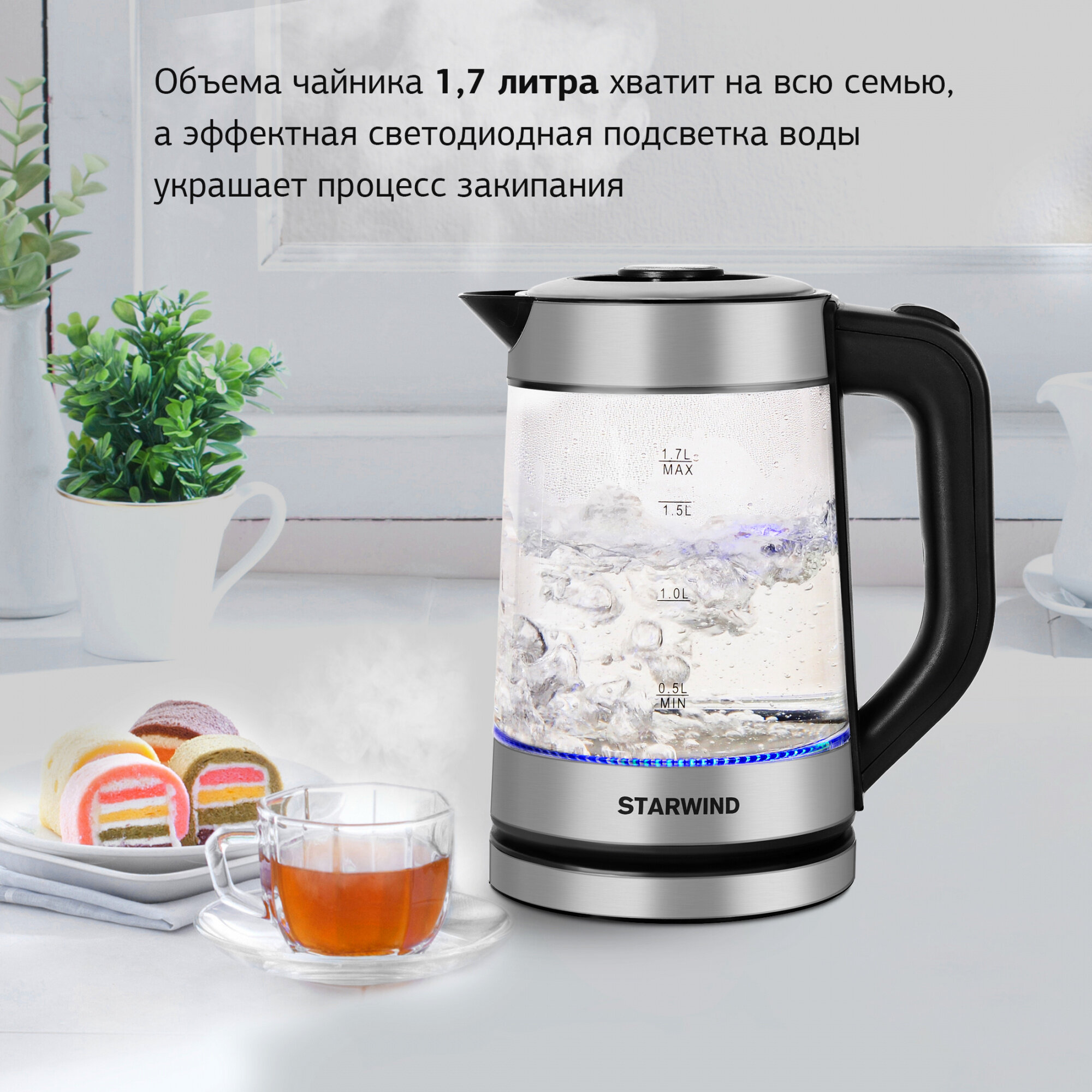 Description: Type: kettle, body material: plastic/glass, volume: 1.70 l, type of heating element: closed, features: 360 degree rotation, water level indicator, on indication, removable lid, filter