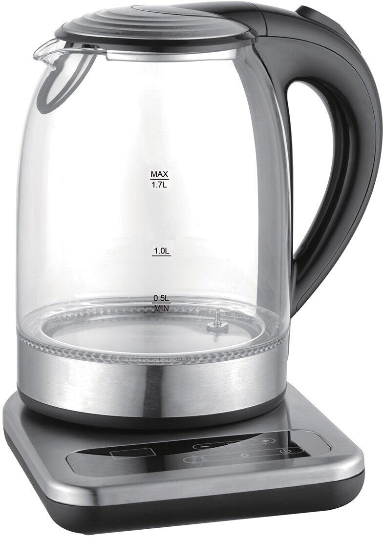Type: kettle, case material: metal/glass, volume: 1.70 l, type of heating element: closed, additional functions: keep warm, features: water level indicator, filter