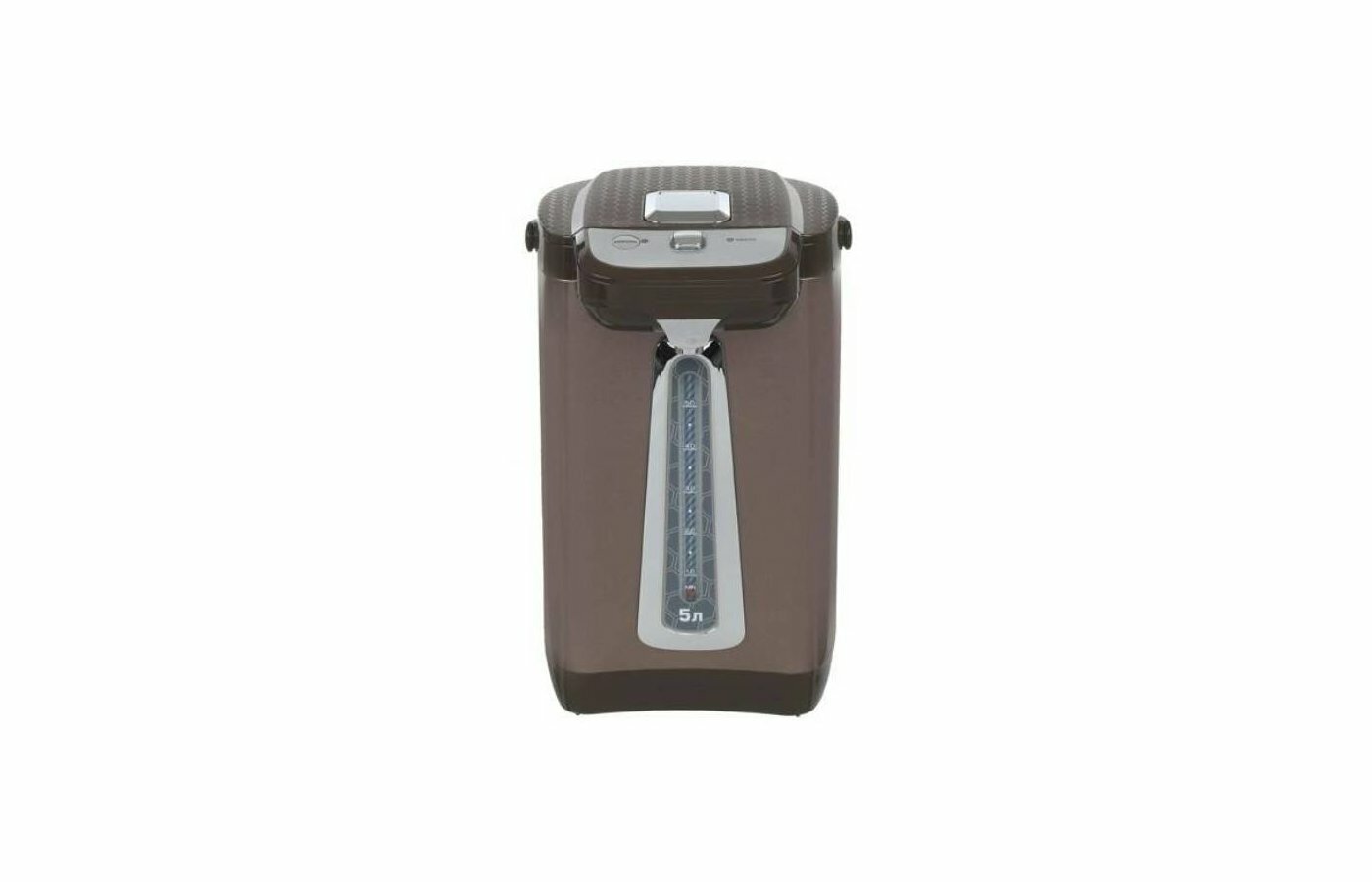 Type: thermopot, case material: plastic, volume: 5 l, type of heating element: closed, additional functions: keeping warm, features: double walls, water level indicator
