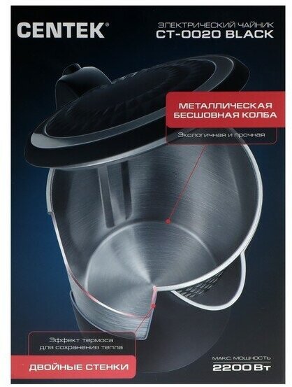 360 degree rotation, double walls, water level indicator, cord storage