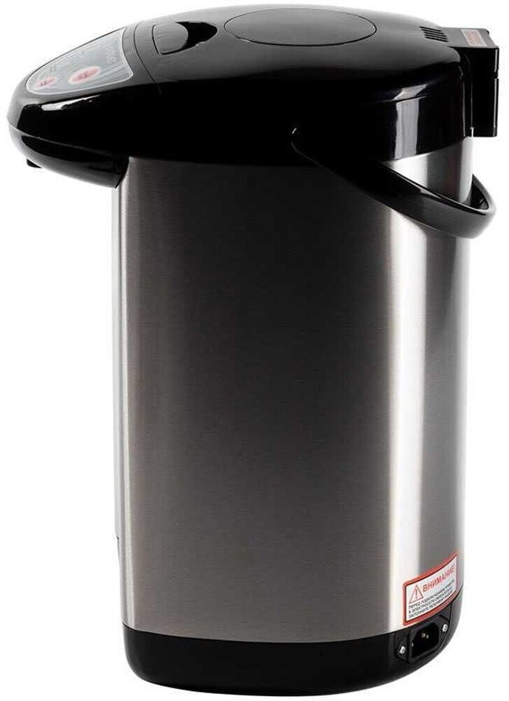 Type: thermopot, body material: plastic, volume: 4 l, type of heating element: closed, additional functions: keeping warm, features: 360 degree rotation, double walls, water level indicator, pattern