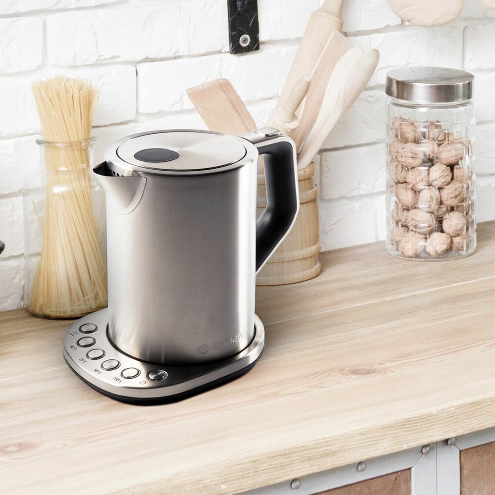 Selection of water heating temperature: 40°С / 70°С / 90°С / 100°С, auto-off when boiling, push-button control panel with LED backlight, ergonomic non-heating handle, power indicator light