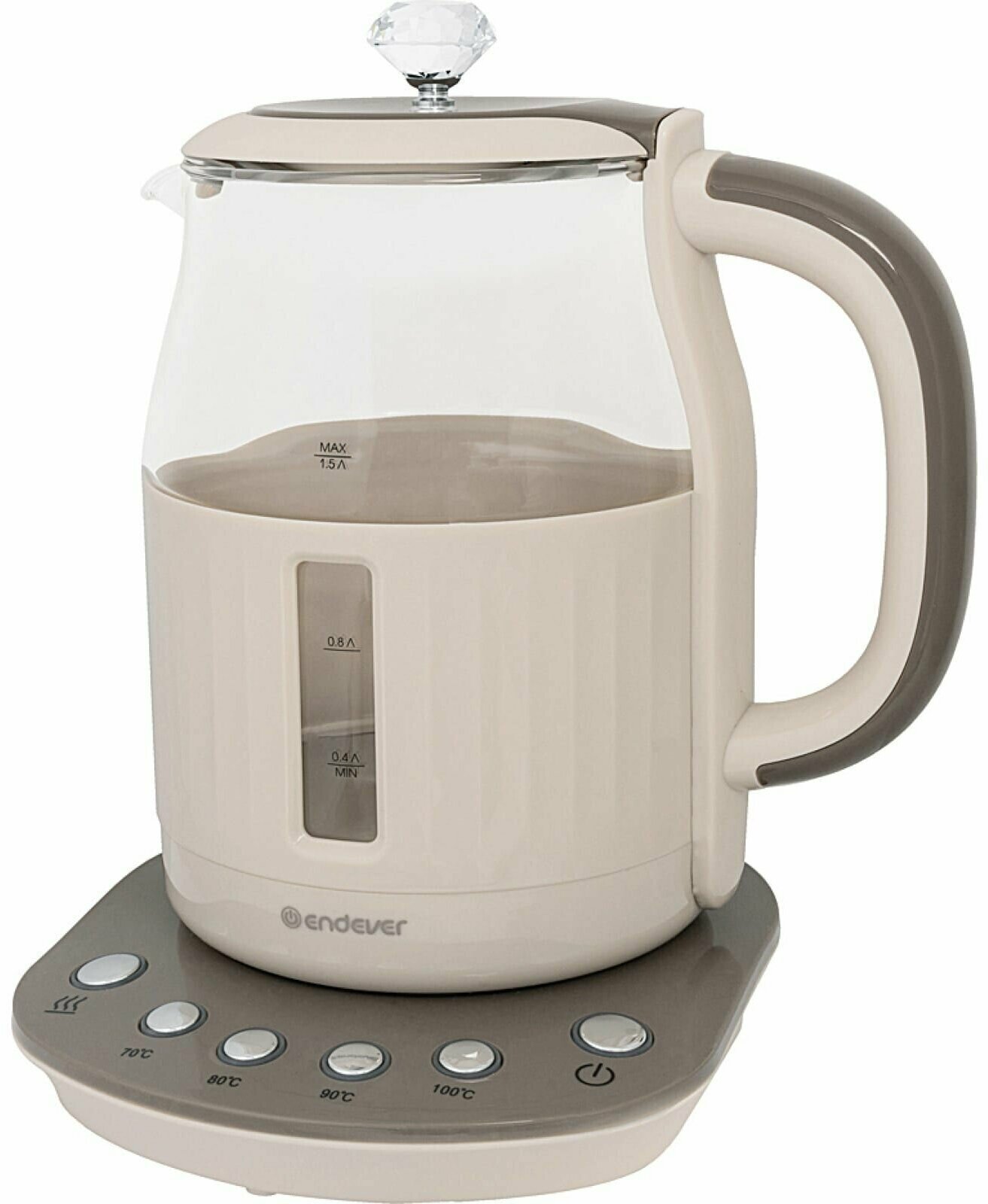 Type: kettle, body material: plastic/glass, volume: 1.50 l, type of heating element: closed, additional functions: keeping warm, features: 360 degree rotation, double walls, water level indicator, and