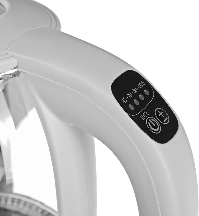 Additional Information: 5 water heating modes with a specific backlight color: 40˚C green, 70˚C blue, 80˚C yellow, 90˚C purple, 100˚C red; when the temperature mode is turned on and off, the kettle beeps; equipment: h