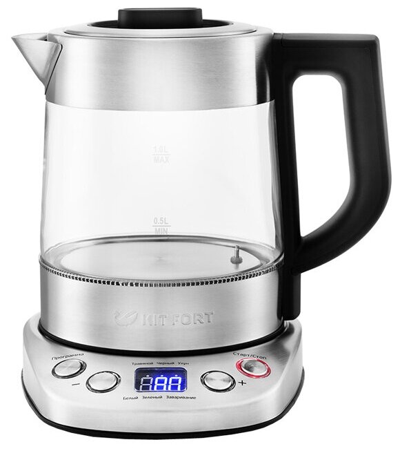 Type: kettle, volume: 1 l, type of heating element: closed, additional functions: keeping warm, features: 360 degree rotation, brewing filter, water level indicator, cord storage compartment, removable