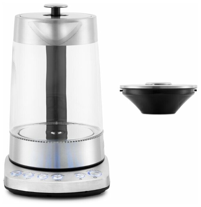 Type: kettle, body material: metal/glass, volume: 1.70 l, type of heating element: closed, teapot, features: teapot, water level indicator, cord storage compartment, removable lid