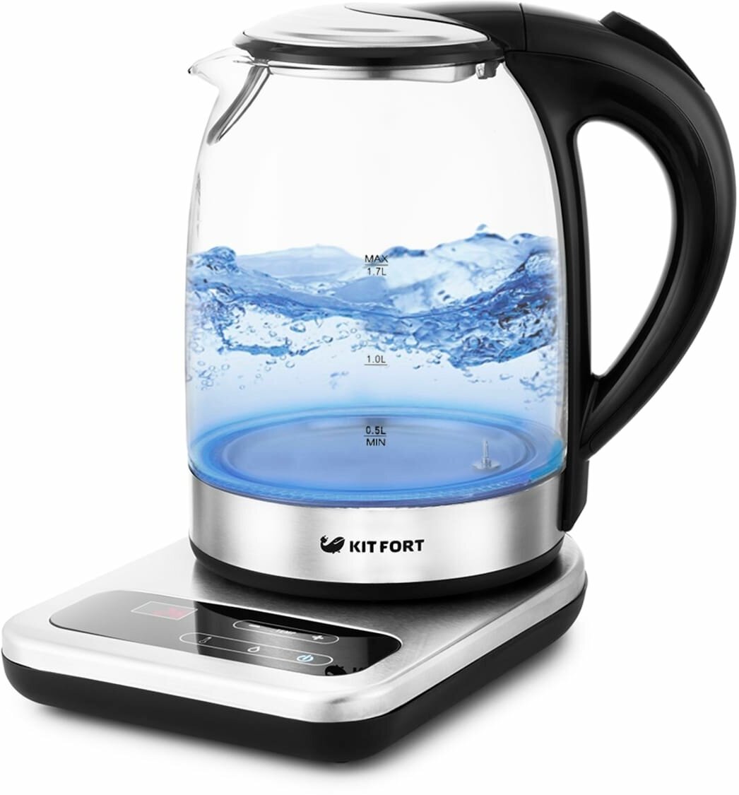 Type: kettle, body material: plastic, volume: 1.70 l, type of heating element: closed, additional functions: keeping warm, features: 360 degree rotation, water level indicator, cord storage compartment