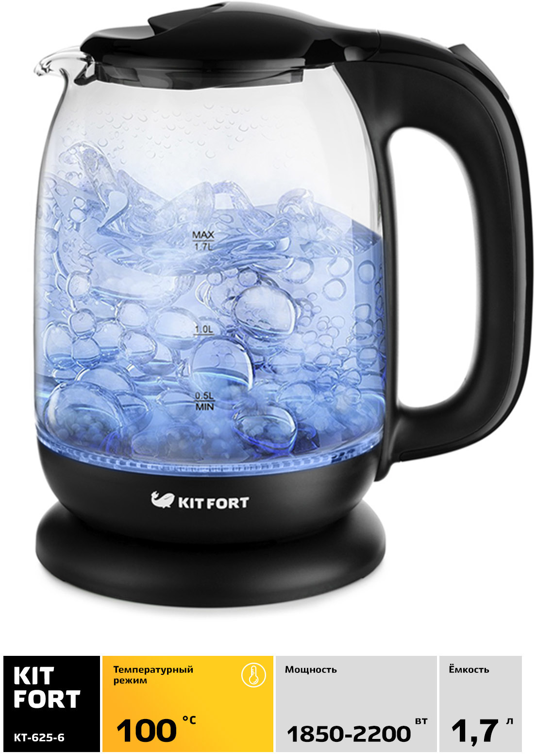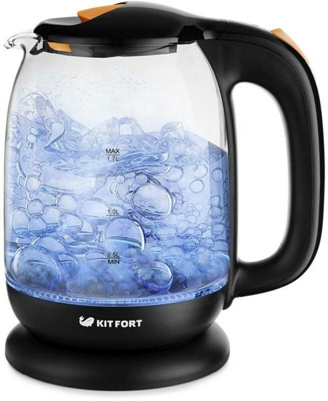 Description: Type: kettle, body material: plastic/glass, volume: 1.70 l, type of heating element: closed, features: 360 degree rotation, water level indicator, power on indication, cord storage compartment