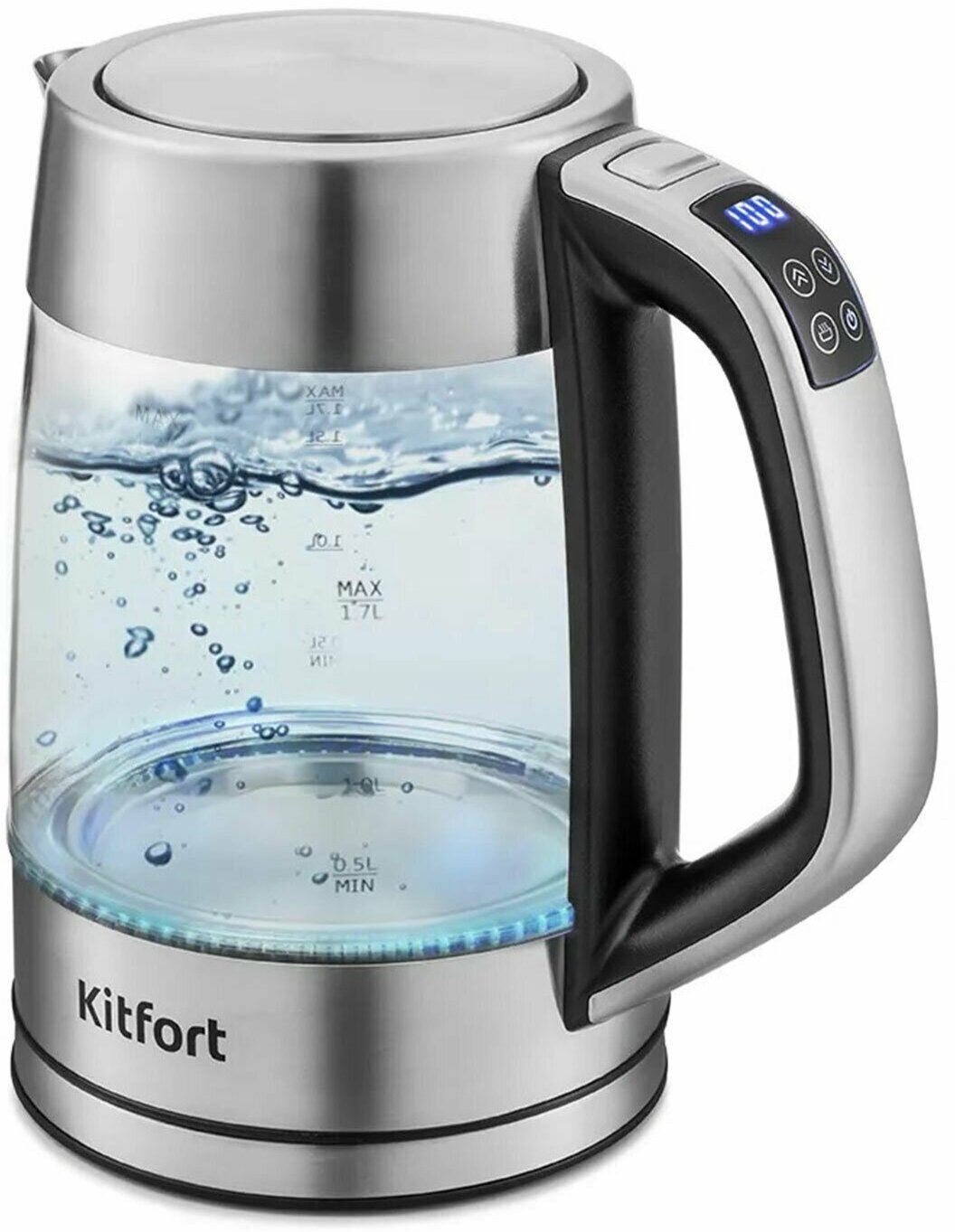 Type: kettle, body material: plastic/glass, volume: 1.70 l, type of heating element: closed, additional functions: keeping warm, timer, features: 360 degree rotation, water level indicator, compartment for