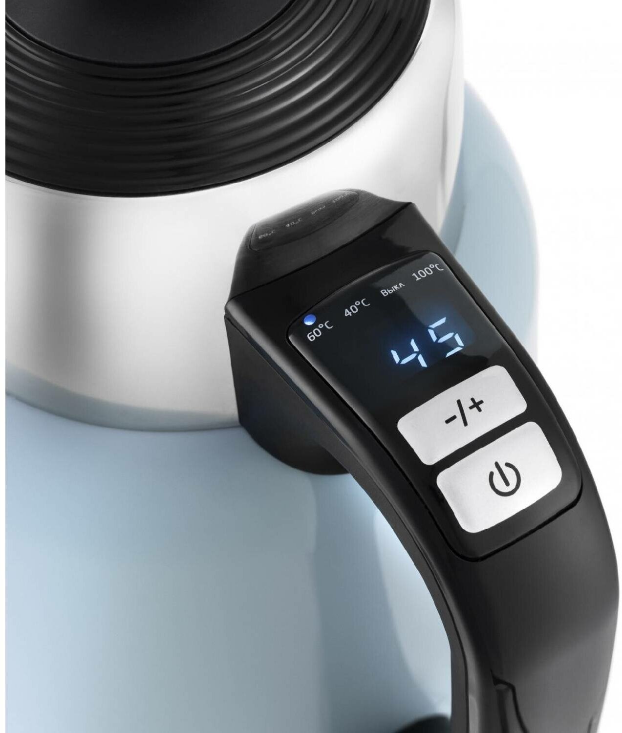 Description: Type: kettle, body material: plastic, volume: 1.70 l, type of heating element: closed, additional functions: keeping warm, features: 360 degree rotation, water level indicator, cord storage compartment