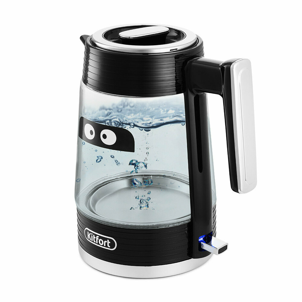 Type: kettle, body material: plastic/glass, volume: 1.70 l, type of heating element: closed, features: water level indicator, on indication, removable lid, filter