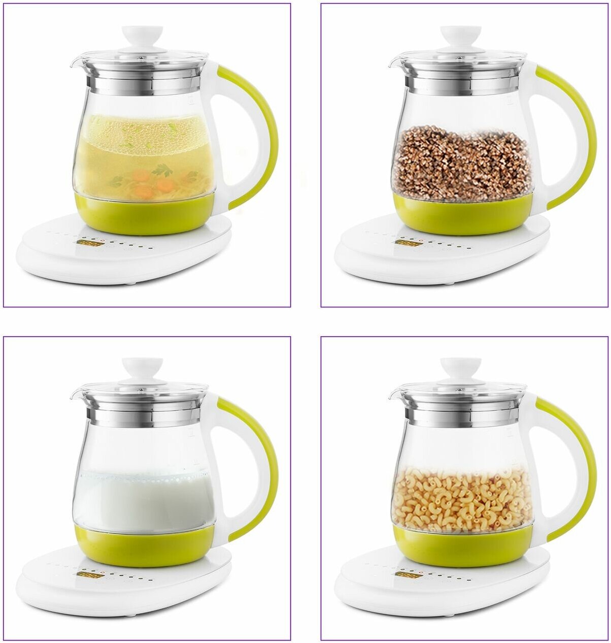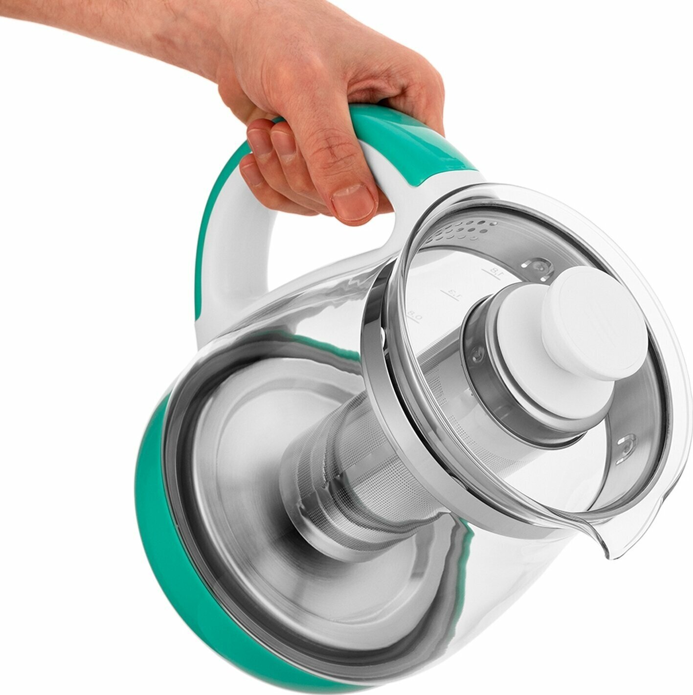 Type: kettle, body material: plastic/glass, volume: 1.80 l, type of heating element: closed, additional functions: keep warm, timer, features: display, brewing filter, water level indicator, indicator