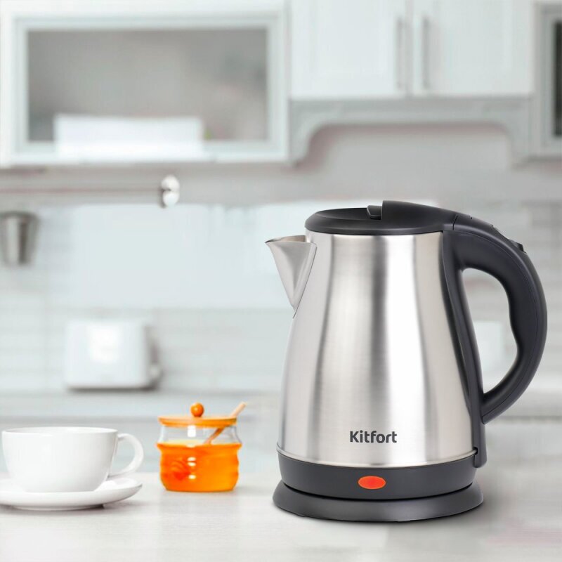 Type: kettle, body material: metal/plastic, volume: 1.80 l, type of heating element: closed, features: 360 degree rotation, on indication, cord storage compartment, filter
