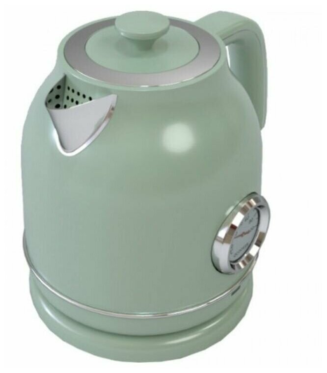 Type: kettle, body material: metal, volume: 1.70 l, type of heating element: closed, features: 360 degree rotation, double walls, on indication, cord storage compartment, removable lid