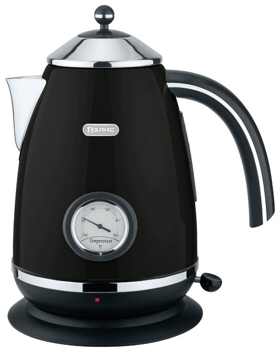 Type: kettle, body material: metal, volume: 1.70 l, type of heating element: closed, features: 360 degree rotation, cord storage compartment, removable lid